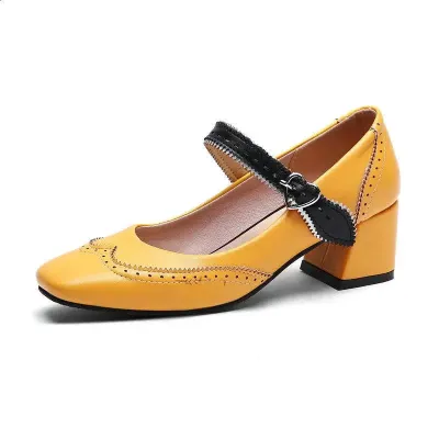 Slimming Shoes Casual Heels Square Toe 2024 Sandals Ladies Sexy Pump Shallow Mouth Mary Jane All-Match Comfortable Spring Latest