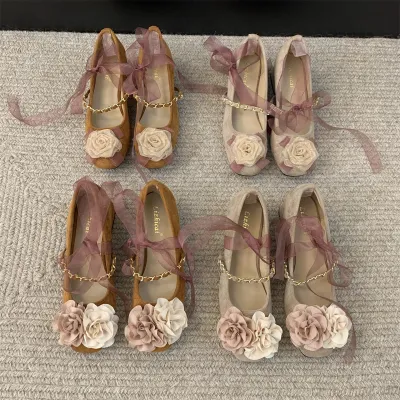 Shoes Woman Flats Modis Elegant Dress Summer On Heels New Floral Spring Mary Janes Flower Summer Shoes Ladies Women's Heels