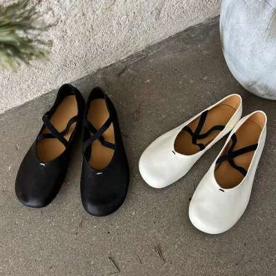 Cross Strap Ballet Flats 2025 Summer Breathable Flats Vintage Soft Leather Mary Jane Flats