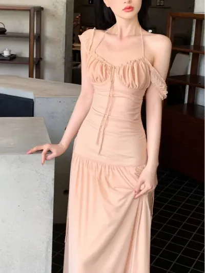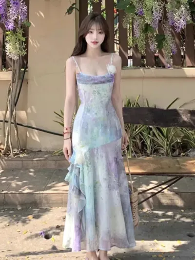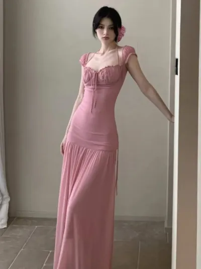 Summer French Style Long Dresses for Women Sexy Spaghetti Strap Ruffles Birthday Party Dress Female Holiday Beach Vestidos Robe