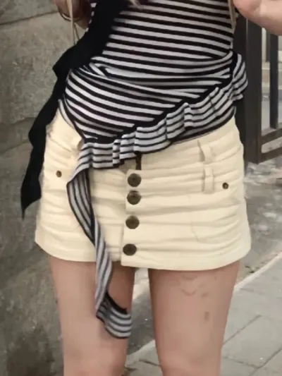 American Single Breasted Denim Skirts Y2k Sexy Low-waisted Bodycon Skirt Forwomen Summer New All-match Faldas Mujer