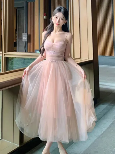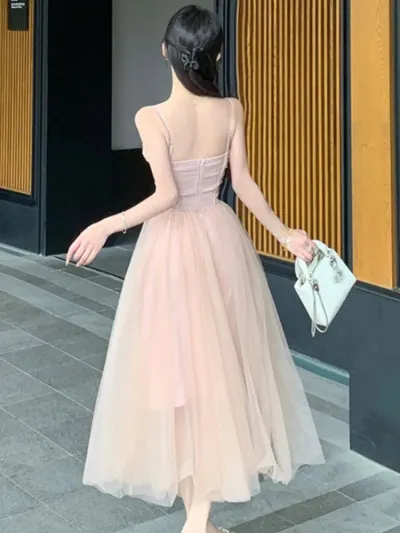 Sweet Princess Party Dress for Women Elegant Spaghetti Strap Princess Birthday Prom Vestidos Summer Slim Waist Female Robe New