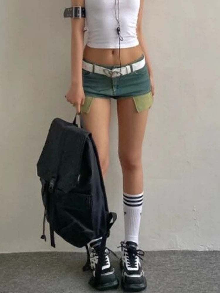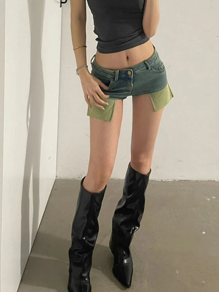 Woman Tie-dyed Jean Low Waist shorts Tight Bodycon Denim Button Shorts Patchwork Hot Pockets Pants Streetwear Sexy Gyaru
