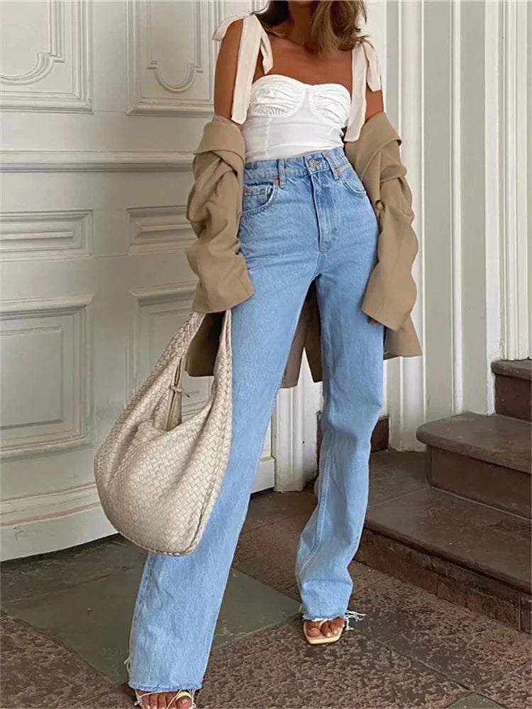 Fashion Women's Jeans Bottom Casual Straight Leg Baggy Jeans Fall Boyfriend Long Trousers High Waist Denim Pants